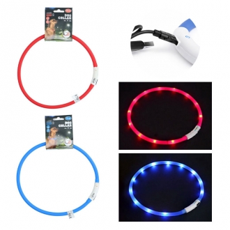 Kutyanyakörv M 71cm piros/kék LED-es méretre vágható Pet Comfort