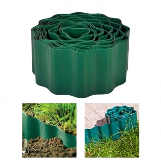 Műanyag, zöld színű ágyásszegély tekercsben. Rugalmas és könnyen formázható, így használatával különböző alakzatokat és íveket lehet kialakítani a kertben. Hullámos mintázata dekoratív és modern megjelenést kölcsönöz a kertnek.
