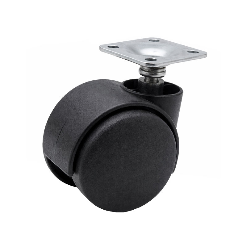 Fém talpas, fekete színű, műanyag bútorgörgő. Fék nélküli kivitel, szabadon guruló.