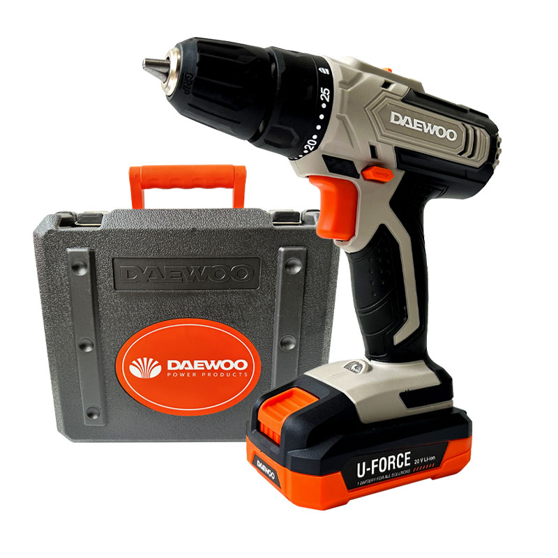 Daewoo DALD20BK-1 akkumulátoros fúró-csavarozó készlet. A szerszám rendelkezik LED-lámpával, amely megvilágítja a munkaterületet, és javítja a látási körülményeket, ha nem megfelelő megvilágítású területen dolgozik. A LED-lámpa automatikusan bekapcsol, ha lenyomja a ravaszt.