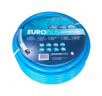 Professzionális öntözés kerted számára - az EUROPLUS BLUE locsolótömlő kiváló minőségű megoldás. Ötrétegű lágy, flexibilis PVC-ből készült, textil spirálfonattal erősítve. Kék színű.