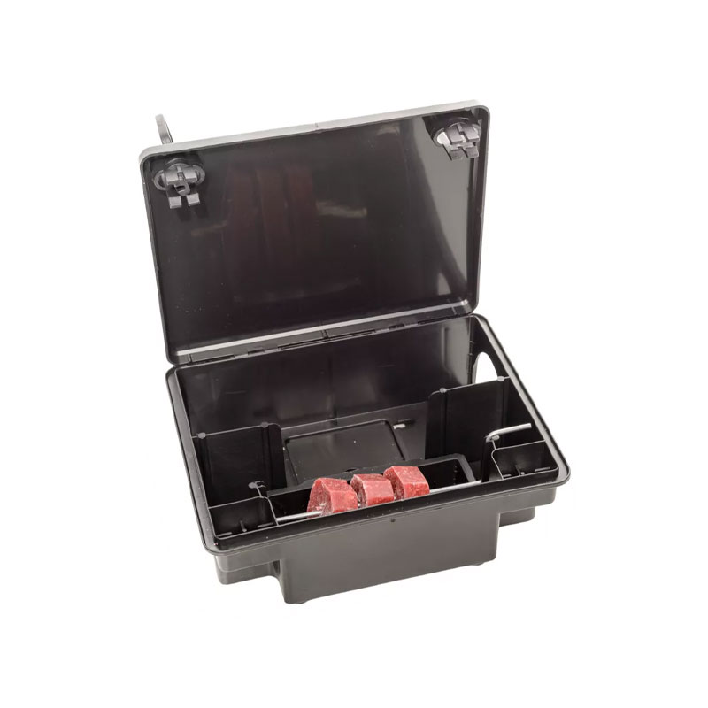 Gazdaságosan és biztonságosan használható műanyag patkányláda. A termék a mellékelt saját kulccsal biztonságosan zárható, ezáltal megelőzhető, hogy az irtószerhez illetéktelenek hozzáférjenek. Kivehető etetőtálkával és fém nyárssal szállítjuk, méreg vagy ragacslap behelyezésével is alkalmazható.